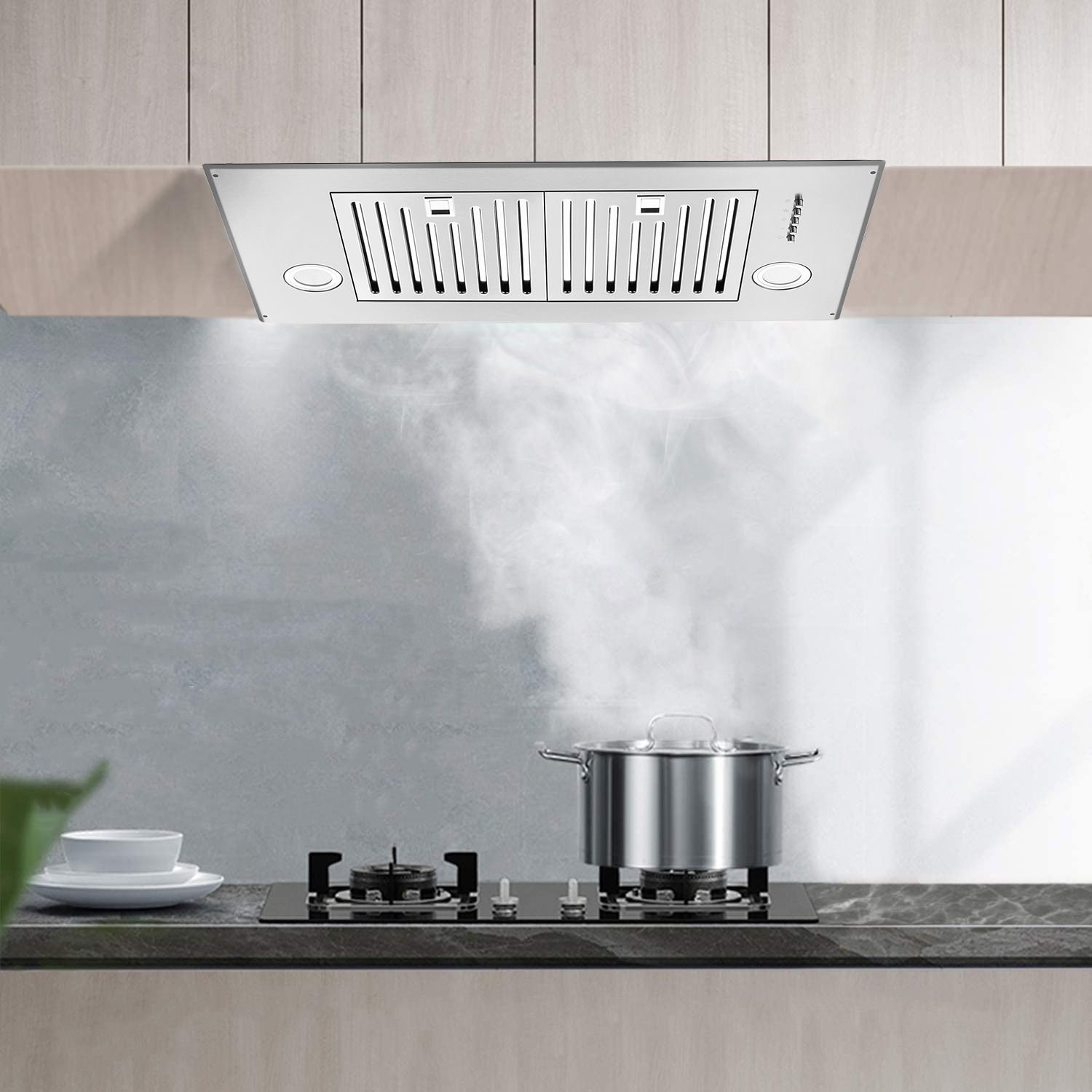 [Elegant Design]Insert Range Hood is made of food-grade; durable; stainless steel brushed stainless steel; which is greasy proof; fouling proof; rust proof; and has an elegant appearance suitable for different kinds of kitchen