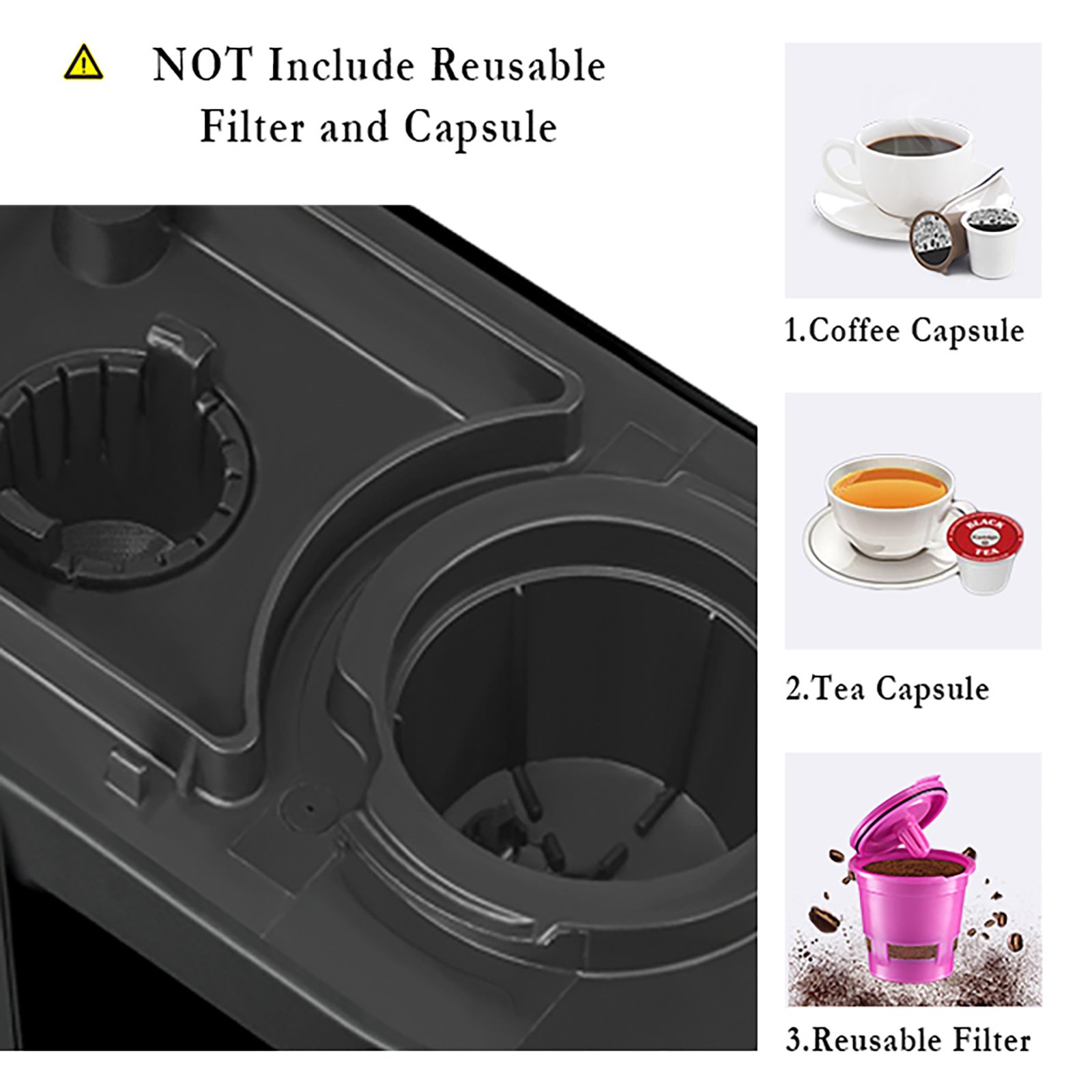 1, (SINGLE CUP COFFEE BREWER-12OZ)CHULUX personal coffee maker compatible with 1.0 and 2.0 pod coffee capsules to meet variety needs.Also suitable for using ground coffee (reusable filter NOT included) to create your private cafe at leisure or busy moments.