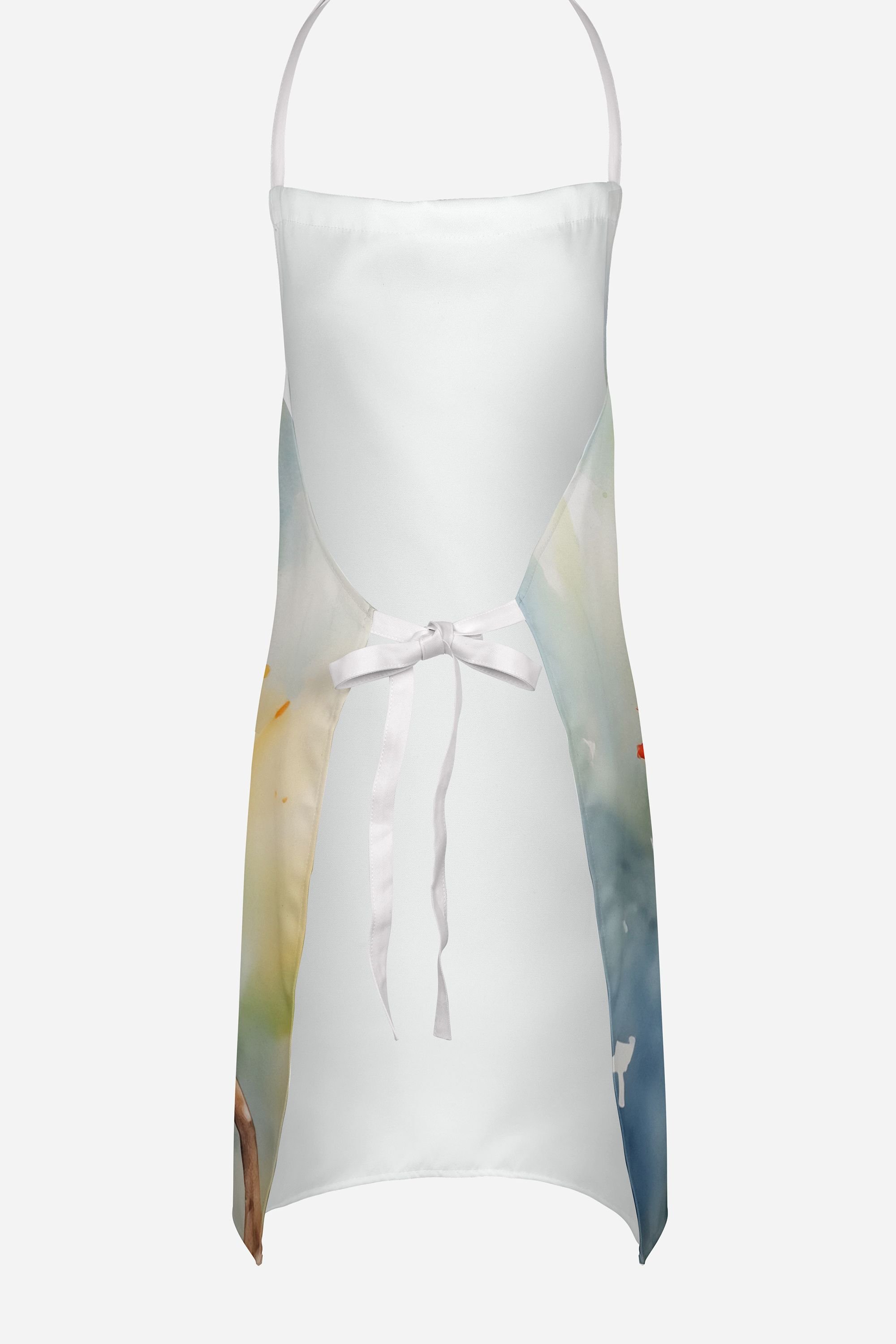 Apron featuring breed specific Rainbow Lorikeet artwork. Elevate your cooking, baking, and grilling experiences with our versatile Kitchen or BBQ Apron. This Bib Style apron isn't just limited to culinary activities - it also serves as an excellent baking apron, artist apron, server apron, gardening apron, or even a dog grooming apron. The apron showcases vibrant full-color artwork contributed by one of our talented artists, bringing a dash of style to your daily tasks. With dimensions of approximately 27"W x 30"H, it provides ample coverage to protect your clothing from spills and splashes. Our apron is meticulously crafted from 100% Ultra Spun Polyester, known for its durability and lightweight nature. The apron comes with white tie straps, ensuring a comfortable and adjustable fit for all. It's a perfect choice for kitchen apron enthusiasts, whether you are a woman or a man. Designed for easy maintenance, this apron is fully machine washable. The quick-drying polyester material actively reduces staining, keeping your apron looking fresh and new for longer. Our beautifully designed apron isn't just a functional kitchen accessory - it's a fashion statement in the culinary world!