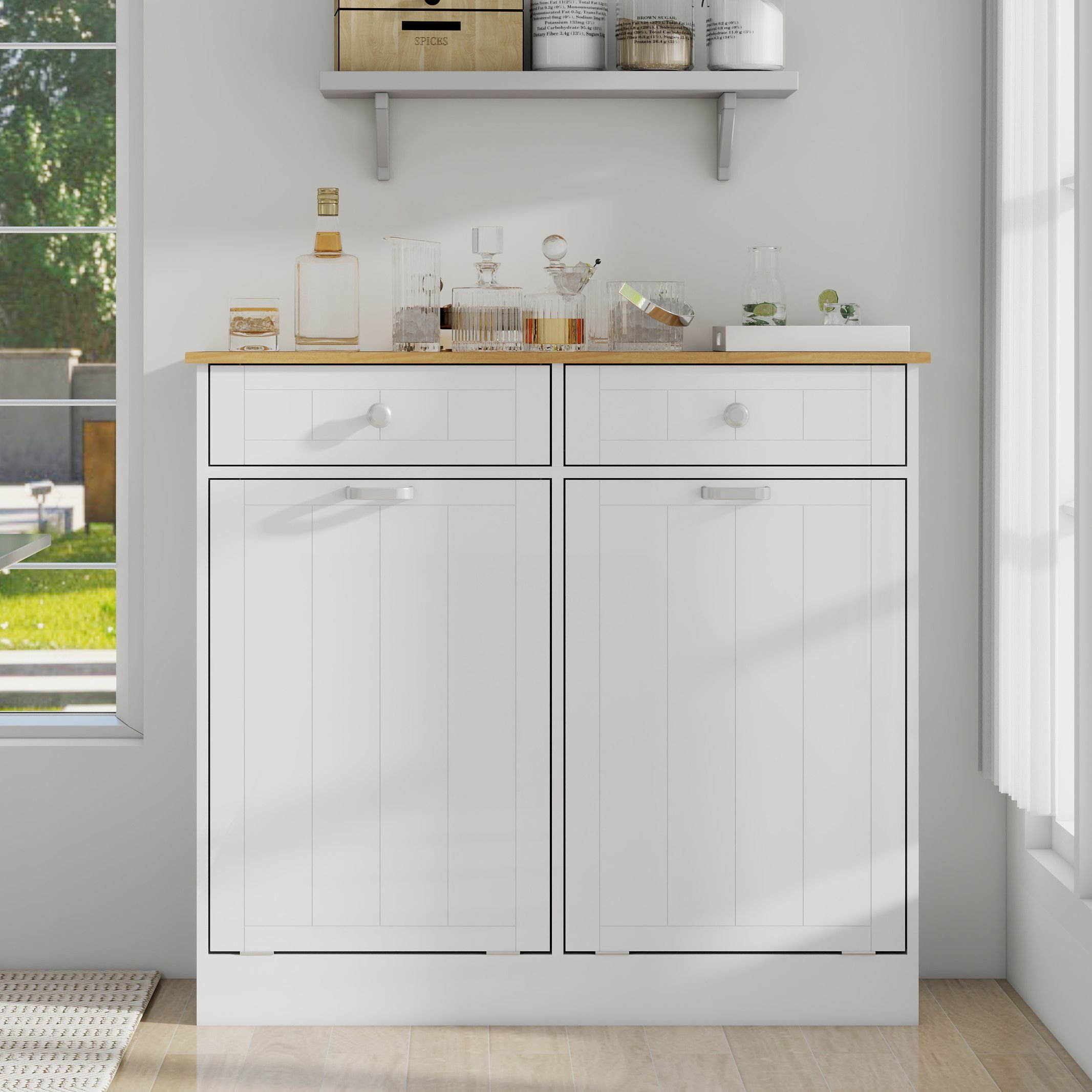 Additional Storage Space: Our trash can cabinet with storage comes with 2 drawers and a 40 inch large tabletop. You can make full use of these spaces to store some kitchen items, garbage bags or other household items.